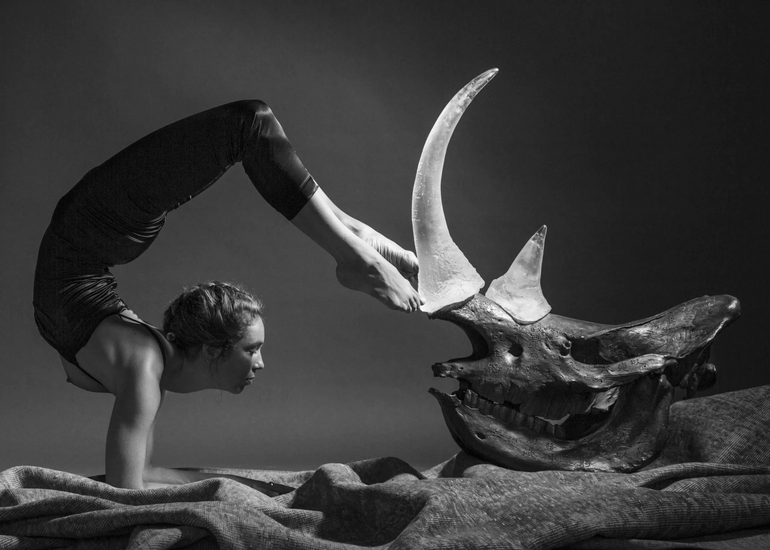 The second variation consists of a limited edition of 12 bronze sculptures cast from one of the original skulls. These bronzes are also engraved with Lao Tzu’s words. While the real skulls can legally never be sold, they can be rented for exhibition, with all proceeds supporting the Hooked on Life foundation. The bronze edition is available for purchase, and 100% of the profits generated go directly to the foundation, supporting awareness, rhino conservation, and reintroduction programs.