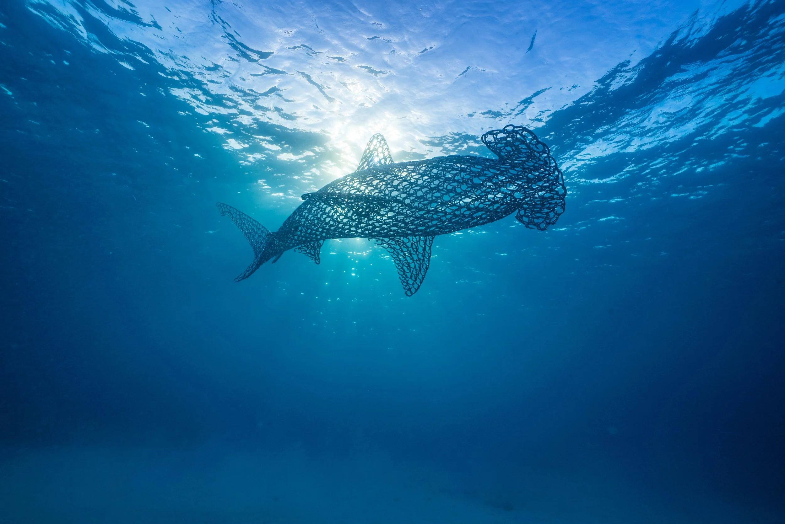 In 2019, Vincent Mock held a six-month long solo exhibition at the Oceanário de Lisboa (Portugal), officially launched by Her Royal Highness Princess Laurentien of the Netherlands. Turning the venue into a kind of an underwater theatre, his suspended marine sculptures drifted above visitors and pulled the ocean into the room, up close and impossible to ignore.