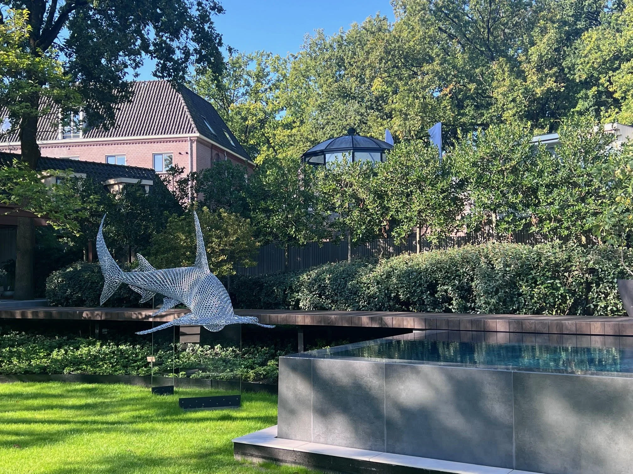 Villa Arte concept store is a premier Dutch luxury lifestyle destination, merging high-end interior design, fashion, and fine art into a total living experience. Vincent Mock’s work anchored the space with his monumental 5-meter Great Hammerhead Shark sculpture, which, crafted from approximately 4,500 stainless-steel fish hooks, served as a powerful, eye-catching centerpiece and conservation statement.