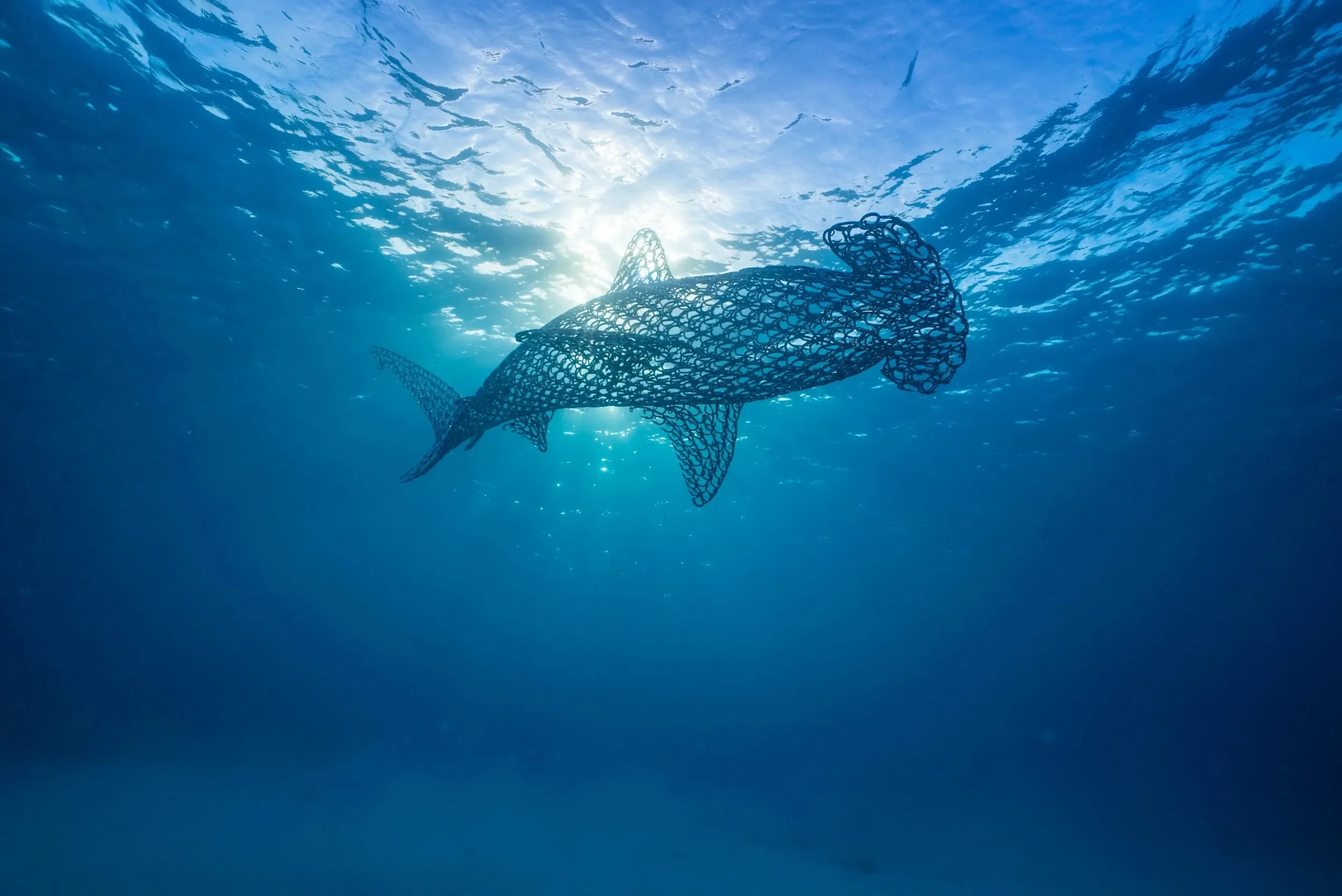 The sculptures are meant to remind us of a sense of unity by transforming man’s destructive tools and intentions into something beautiful. Through his art, Vincent Mock intends to draw attention to the dangers our marine wildlife is exposed to by capturing both sides involved. Rather than spreading a negative narrative on the issue, Mock aims to inspire our modern era by showcasing the beauty of nature and evoking a feeling of oneness.