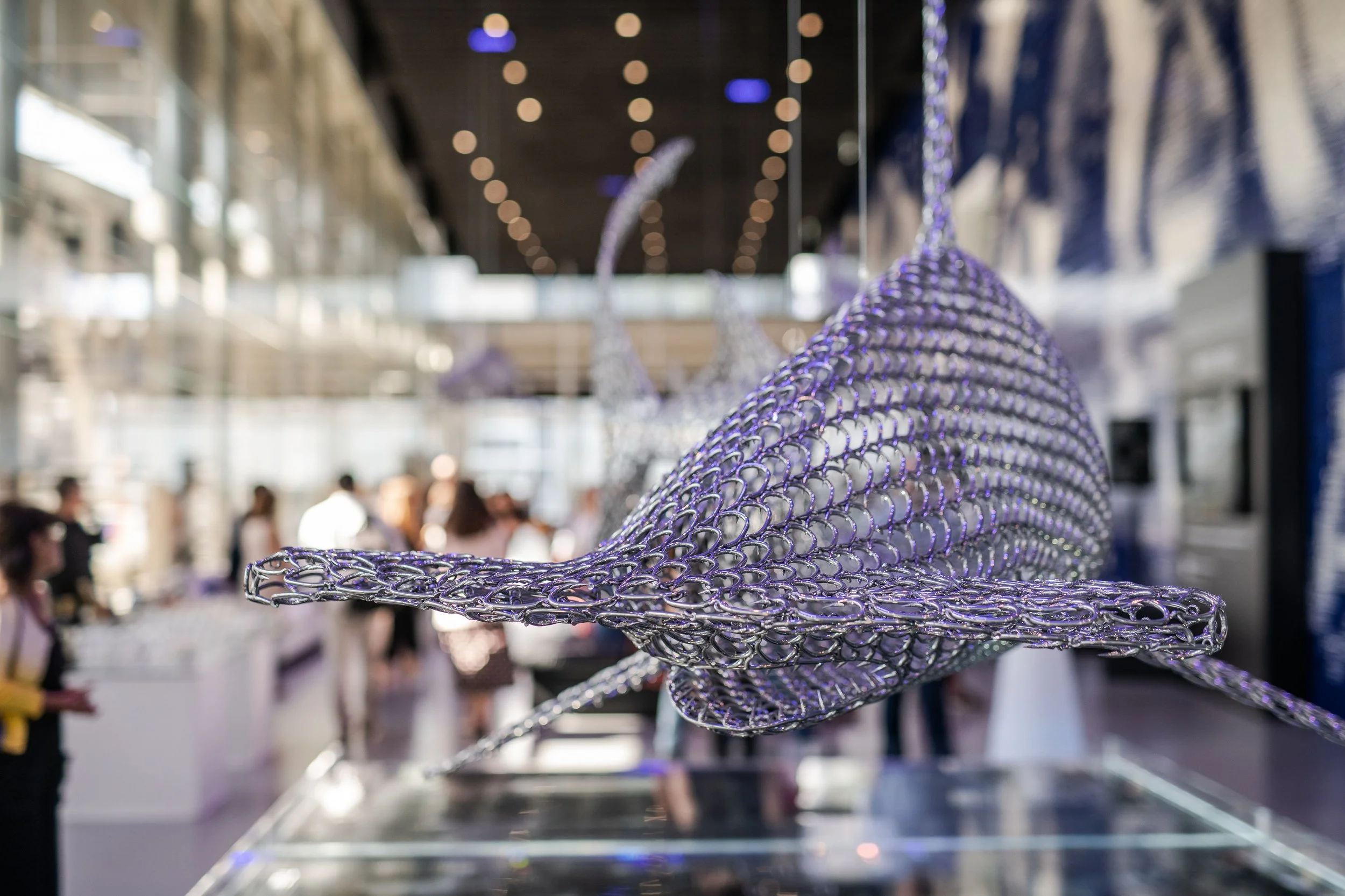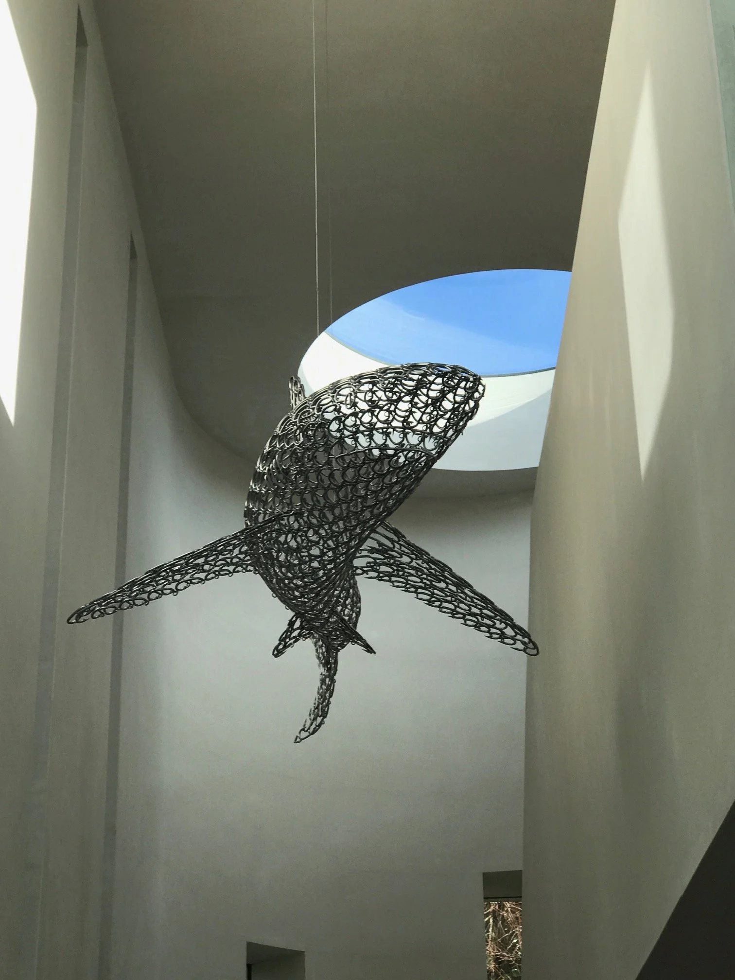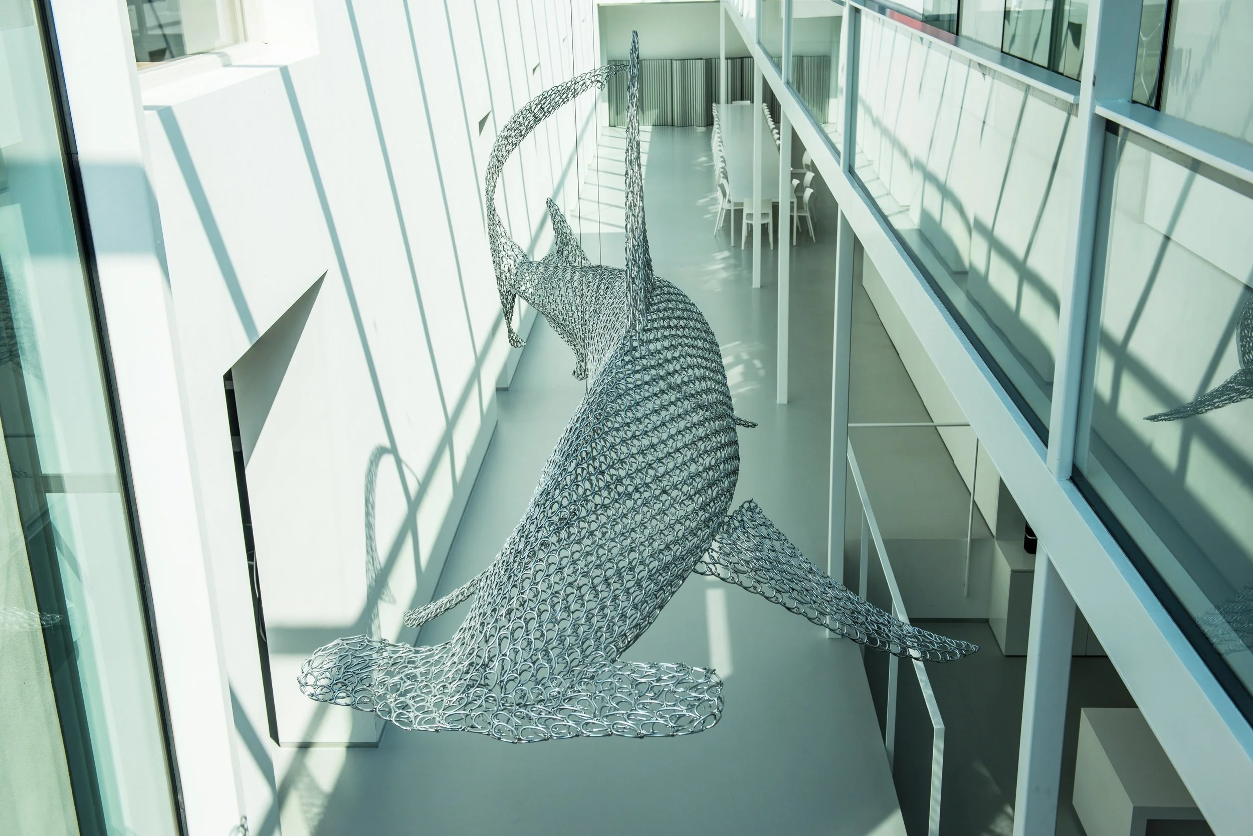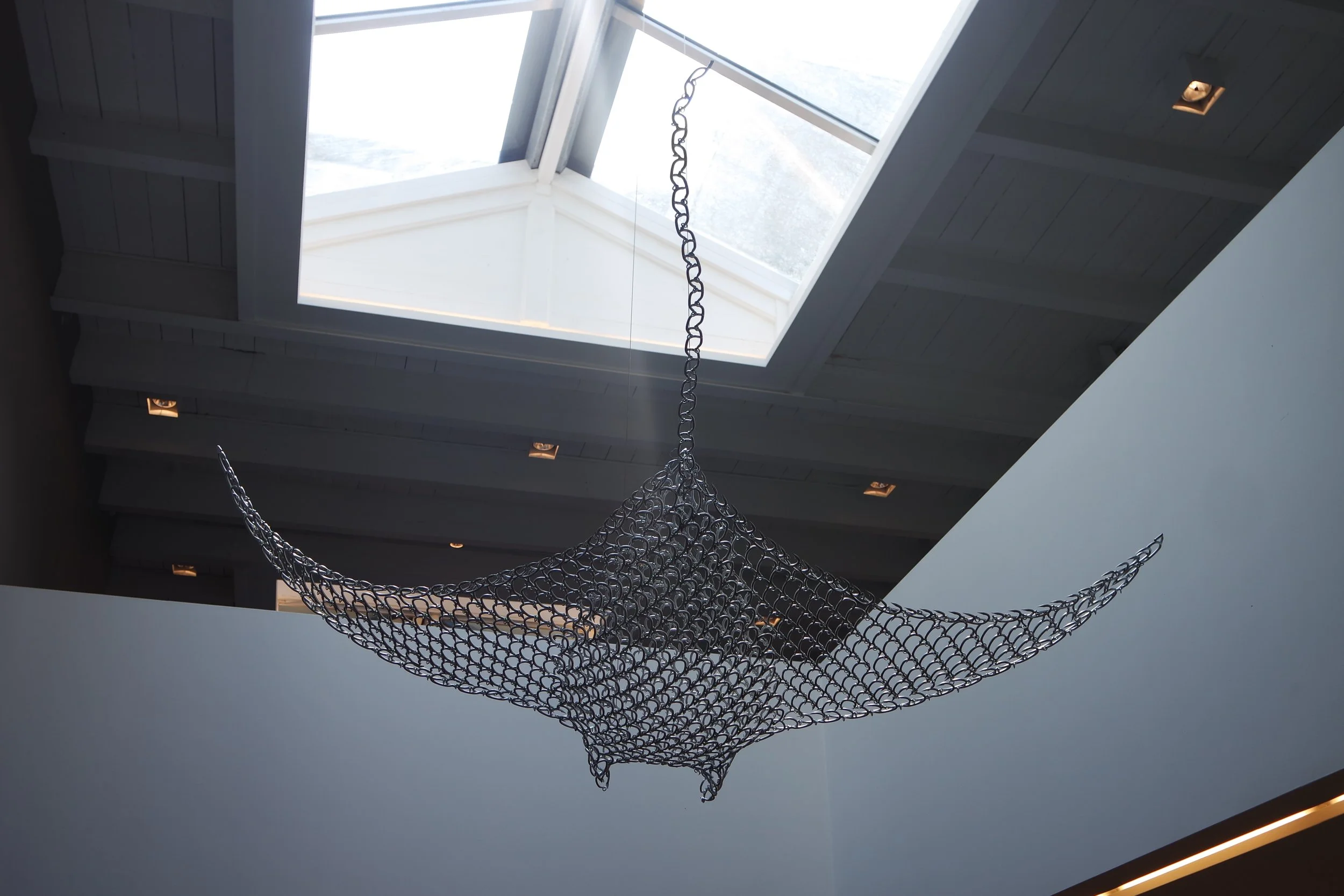 The manta ray sculptures are designed to be experienced in open, luminous spaces such as auditoriums or beneath light ceilings. In these environments, their elegant silhouettes can be fully appreciated, inviting visitors to reflect on the path we choose as a dominant species and on the vital role oceans play in sustaining life on Earth.