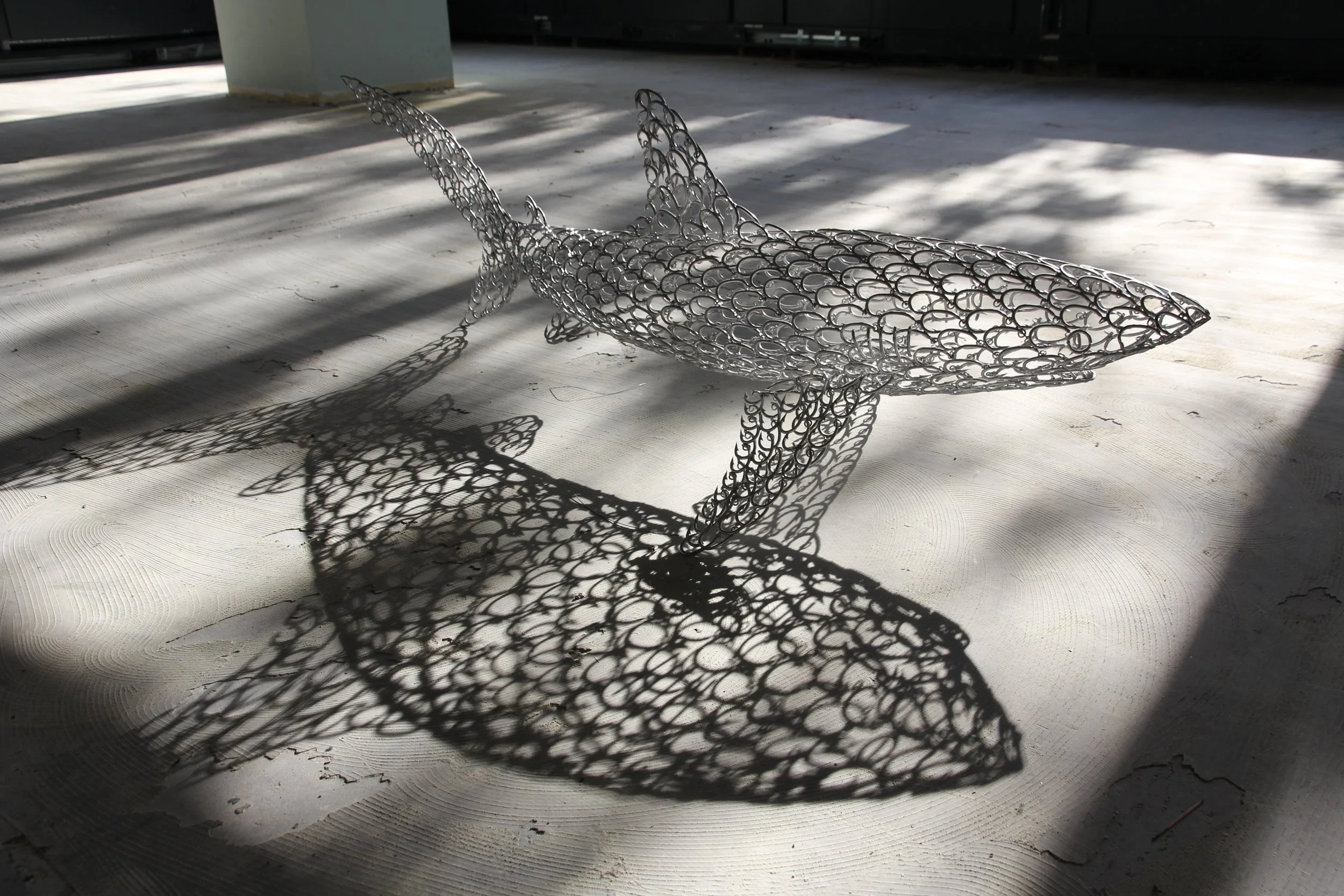 From a distance, the life-size shark, turtle, tuna, hammerhead, and manta ray sculptures appear to be featherlight, suspended in space as if free-floating weightlessly. Like real fish, they seem to celebrate the open space as their ocean.